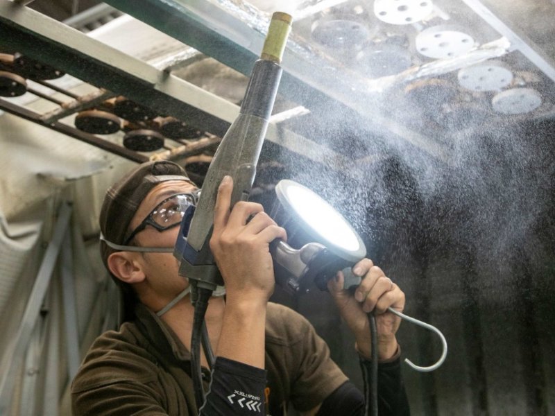 塗装というとシンプルに聞こえるかもしれませんが、形や素材、季節によって様々な製造方法があります。また、フッ素樹脂を塗布した厚みは、µm(ミクロン)の世界で髪の毛よりも薄いものもあるため微妙な調整が必要となる仕事です。